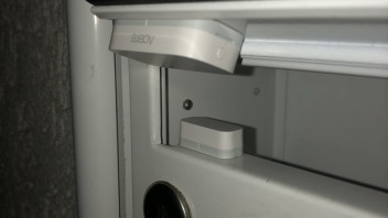 Nun habe ich erst einmal den Türkontakt an die Terrassentür angebracht: