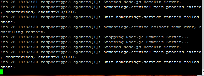 Nach anlegen des Ordner /var/homebridge und einspielen der config.json startet der Dienst nicht.