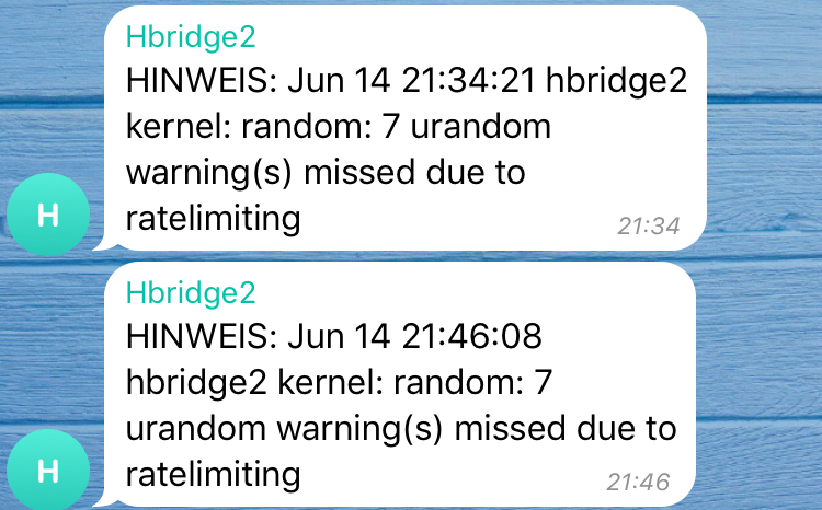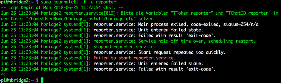 Bitte die Variablen "TToken_lwatch" und "TChatID_lwatch" in der Datei "/home/UserName/hbridge_install/hbridge.cfg" setzen !