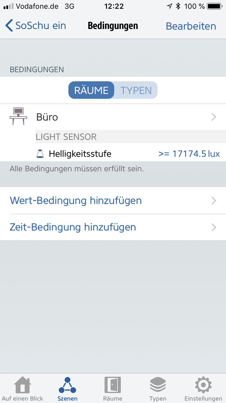 Habe heute meinen ersten Fibaro Motion in Betrieb genommen und bin mäßig begeistert. Eigentlich ist für mich momentan nur der Lichtsensor interessant. Dieser soll als Auslöser für meine Rolladen dienen und ab einem bestimmten Lux-Wert die Rolladen halb schließen, um eine direkte Sonneneinstrahlung zu vermeiden.