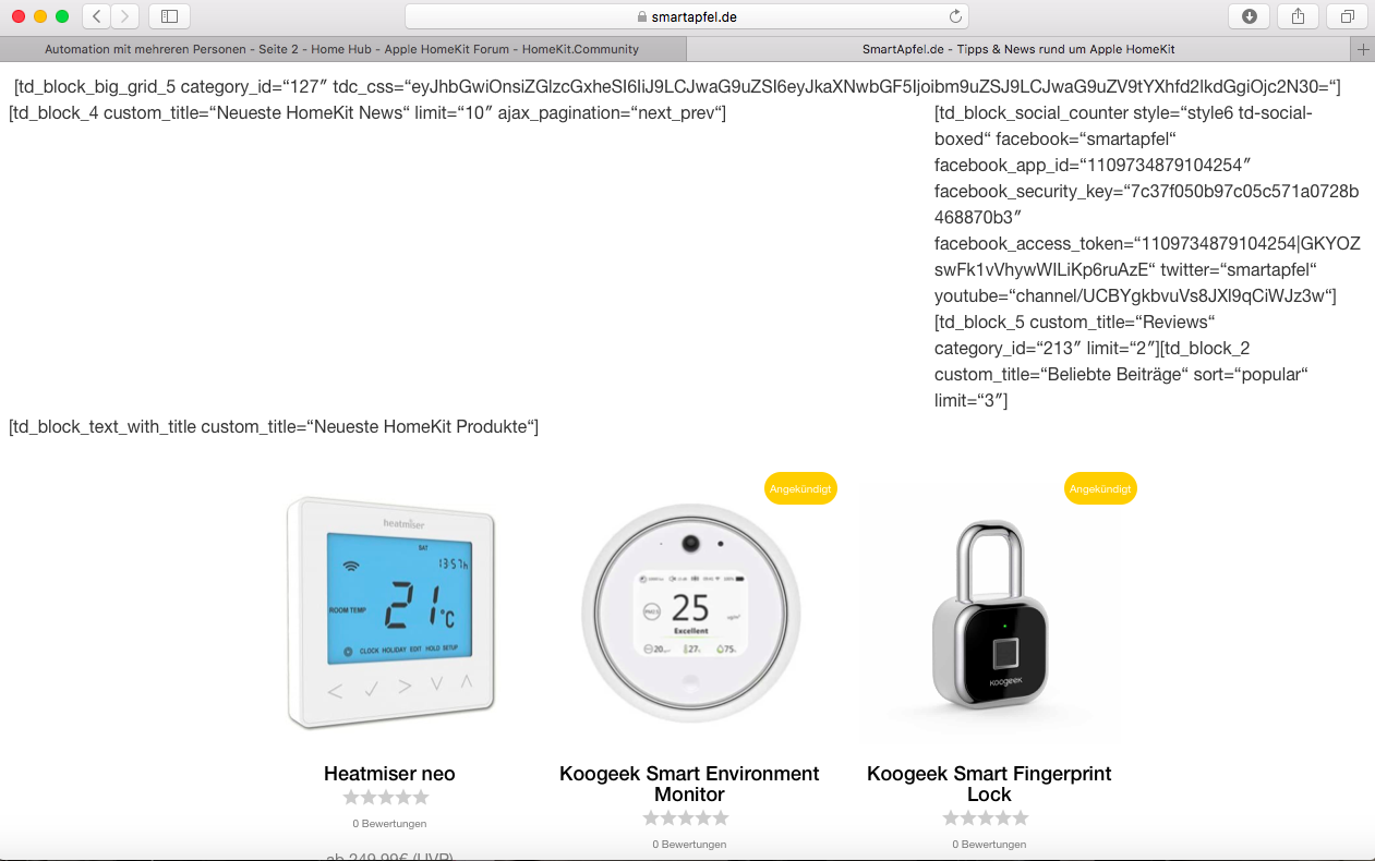 ... und jetzt wieder nicht. Das SmartApfel-Logo auf der "Heute"-Seite ist weiße Schrift auf weißem Grund, auf der Danalock-V3-Seite fehlt die Navigation, insgesamt ist die ganze Seite unübersichtlich, da der Text auf volle Breite gezogen wird. So lange Zeilen kann kein Mensch lesen. Die Bilder im Text kleben irgendwo in der Mitte. Ist das das "Mobile First Konzept"?