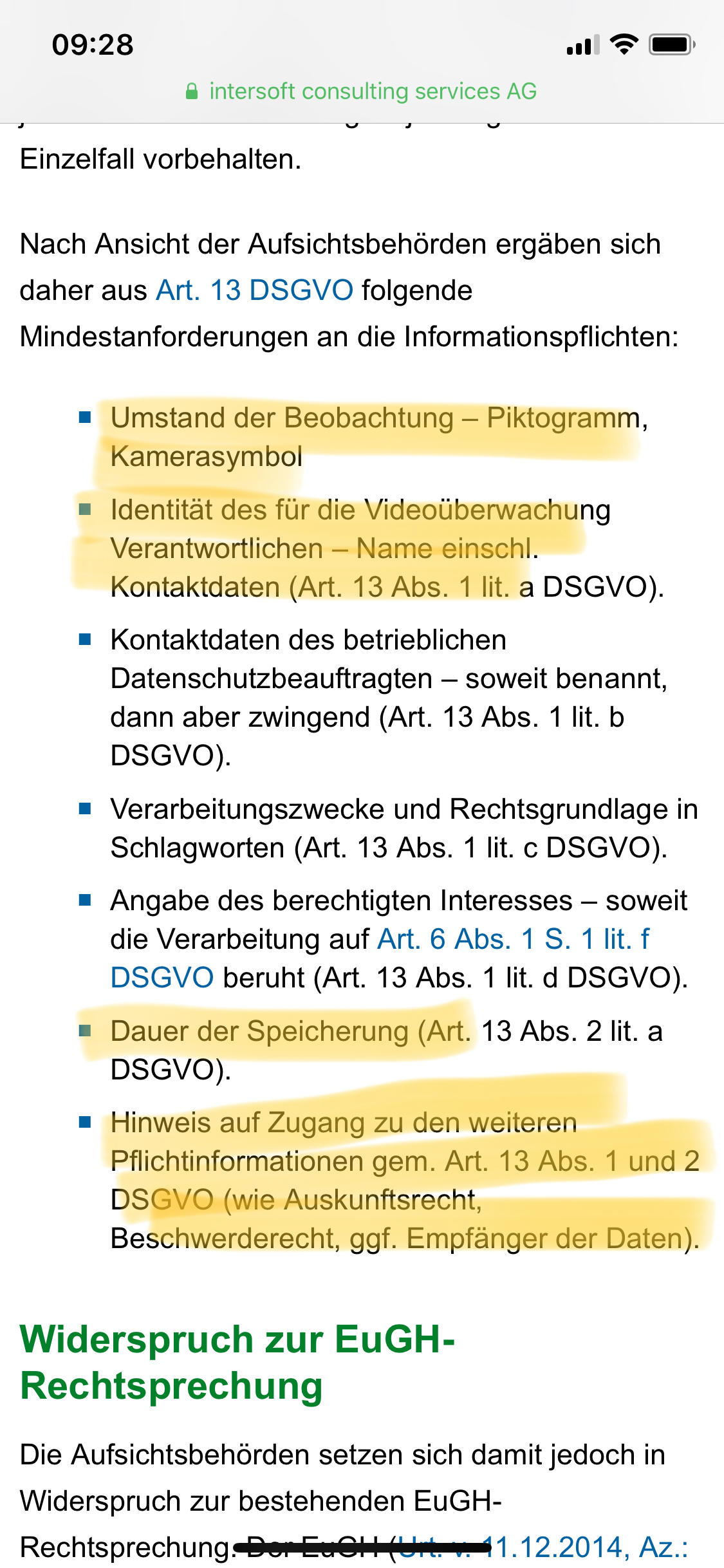 Wo kein Kläger da kein Richter, aber ich gehe davon aus, das sich einige Personen an Videokameras stören werden, (wie ich) und auf Ihre (neuen) Rechte bestehen.
