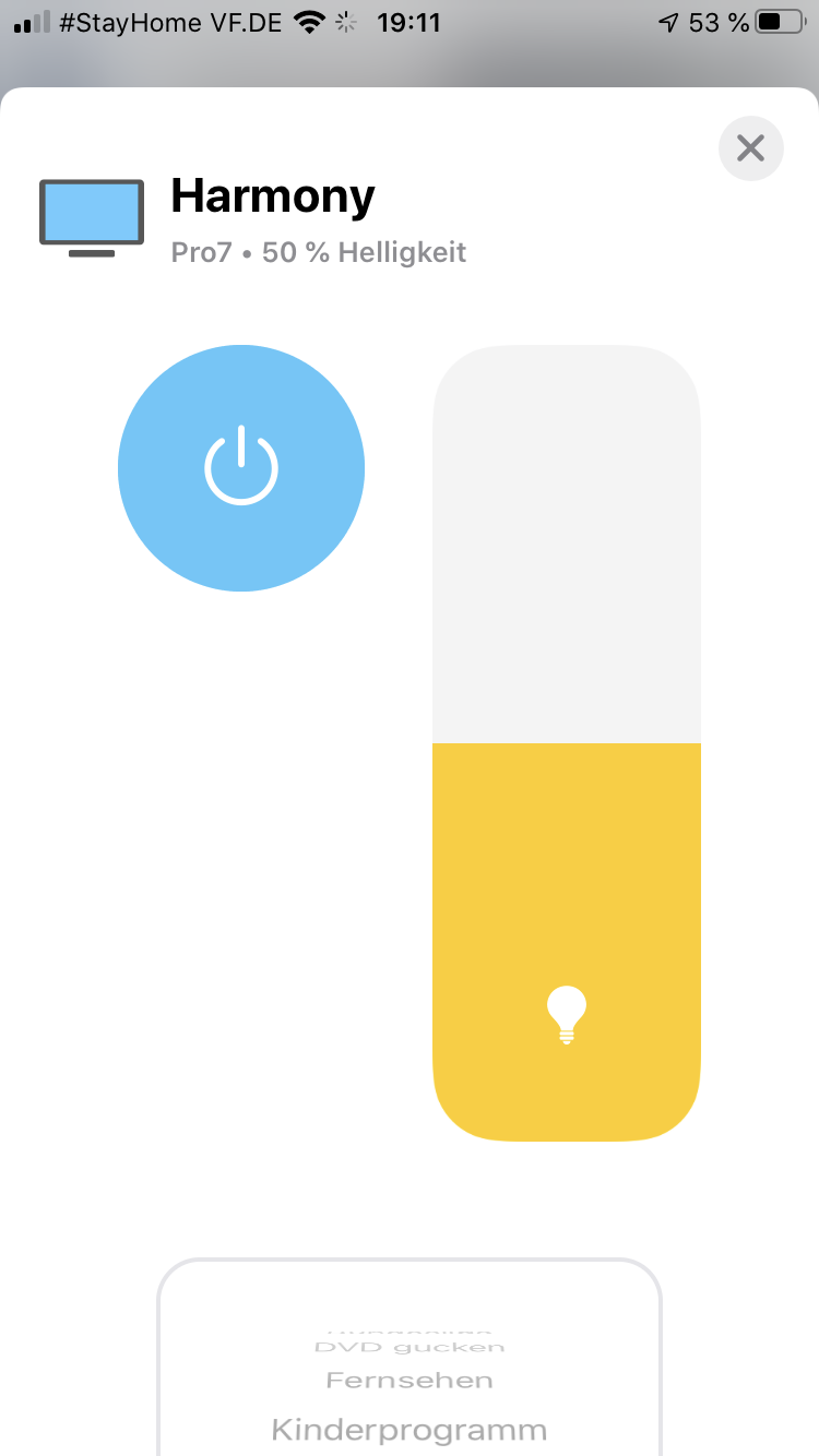Es gibt Geräte die können mit einer bestimmten Lautstärke gestartet werden, mein AVR kann das zum Beispiel. Denn kann ich sagen starte mit -35 (was immer noch laut ist, geht von -100 bis +100 hoch. Wenn der Entwickler auf so etwas eingeht und wie über die Config dann den Minimalwer, Maximalwert und den Defaultwert eintragen könnten. So würde das Harmony Plugin einen genauen Slider uns anbieten können.