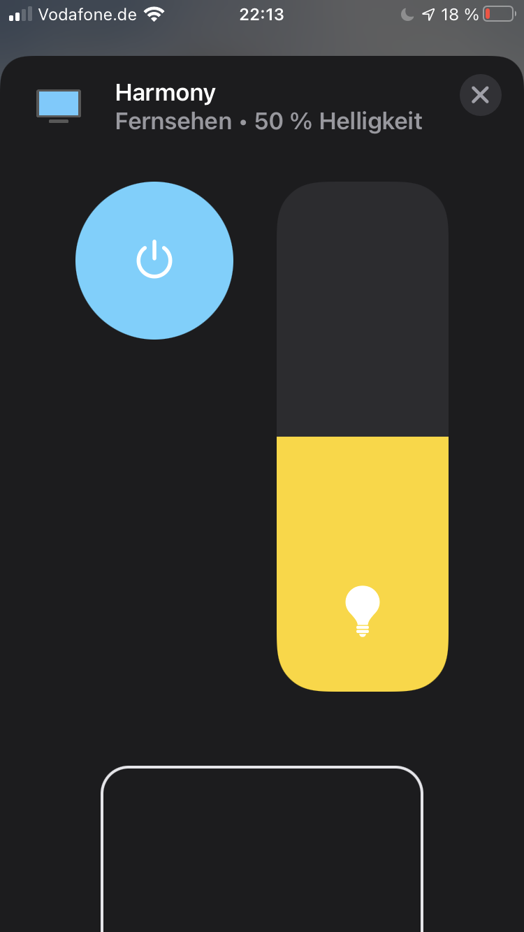 Mein Fernsehsymbol heißt "Harmony". wenn die da drauf touche, ist Harmony zum einschalten und das 2. Gerät heißt bei mir Lautstärke.