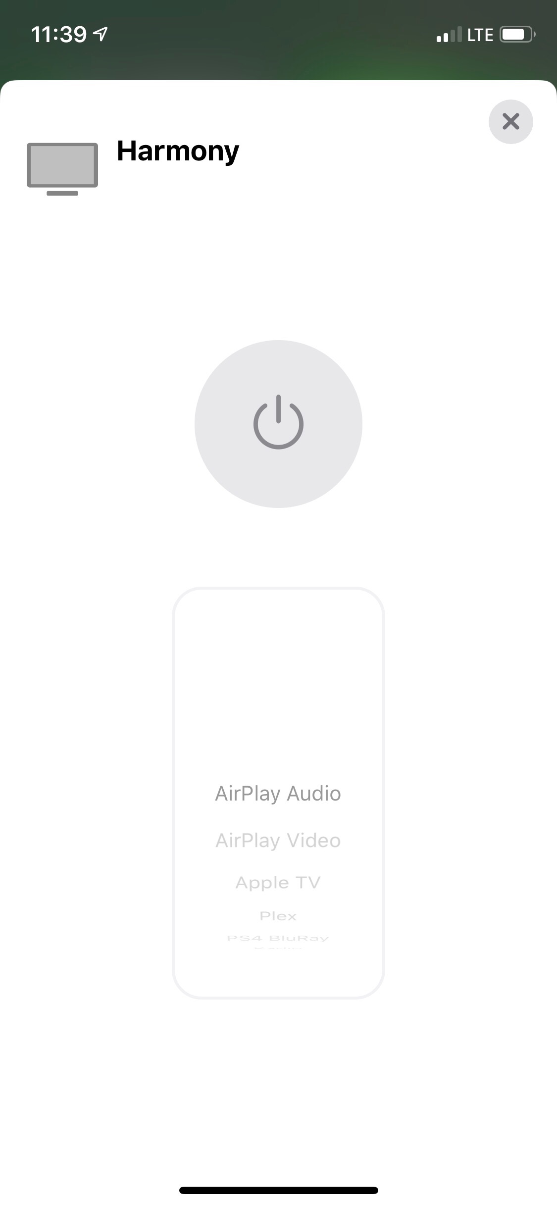 In Homekit (Home APP) kann man durch langes drücken in die Details gelangen. Und hier kann ich die verschiedenen Aktionen auswählen (s. blauer Kasten), aber leider nur wenn ich vorher auf den On/Off Knopf (roter Kreis) gedrückt habe. Leider ist hier das Problem, dass immer "TV" gestartet wird, obwohl ich z.b. gerne "Musik" oder "AppleTV" auswählen möchte.