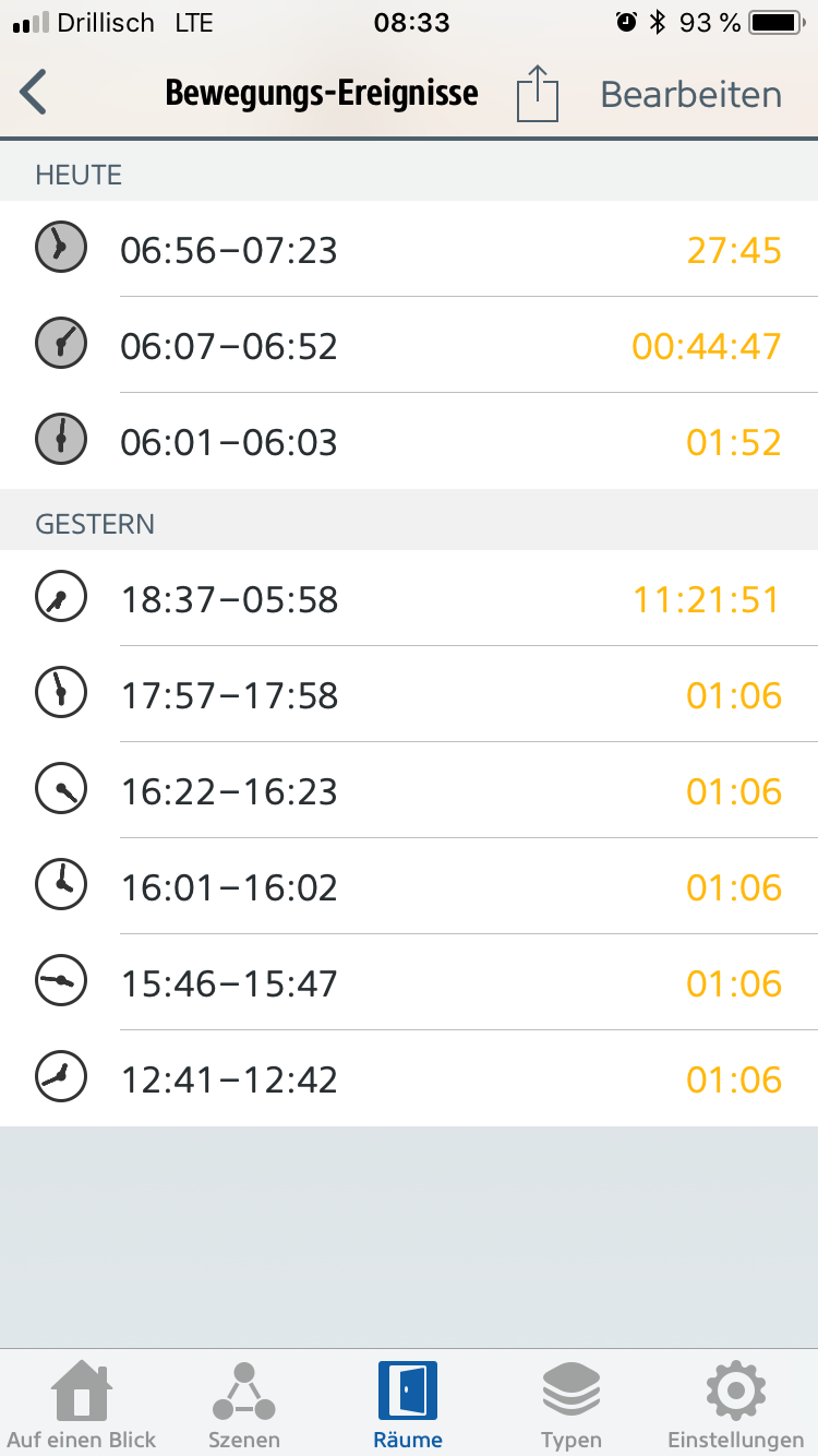 Die Abwesenheiten von vor 18:37 Uhr sind falsch, denn da bin ich nicht zuhause gewesen (die mit 1:06)