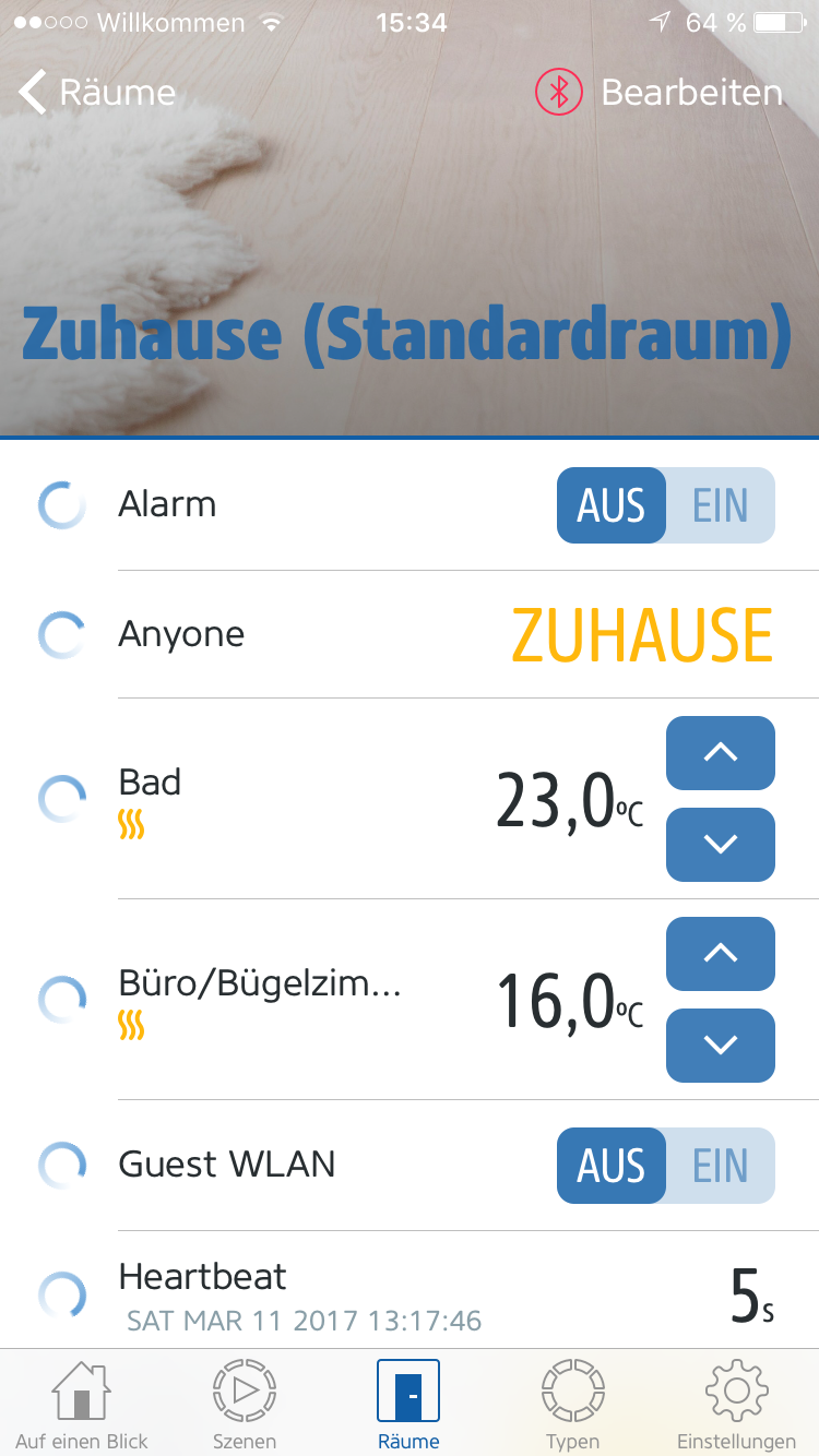 nutze zurzeit die homebridge( plugin people, ifttt, fritz, hue) mit der home app von apple. Diese läuft ganz gut mit etwas Verzögerung bei den fitz comet thermostaten und lightify plug etc.). Da mir die eve app von elgato optisch etwas besser gefällt, habe ich diese ebenfalls installiert . leider reagieren die homebridge komponente über diese app kaum. ( immer nur ein endloskringel bis zum timeout) . Ist das normal bzw. bekannt oder gibt es irgendwelche Einstellungen hierfür ?