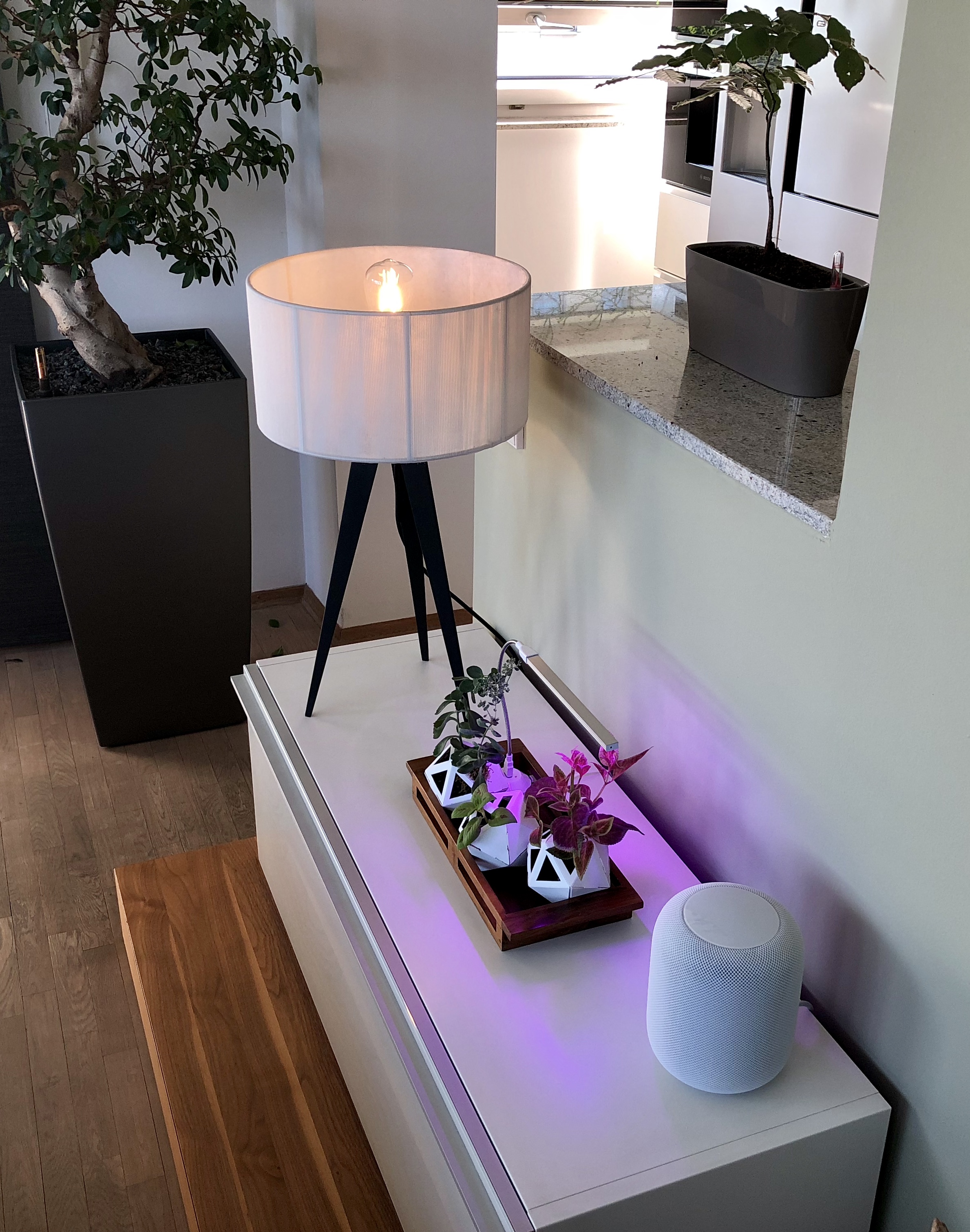 Die Lampe wurde sofort nachdem sie Strom erhalten hat in HomeKit bei den neu gefundenen Geräten angezeigt, Code gescannt und fertig! HomeKit wie gewohnt einfach.