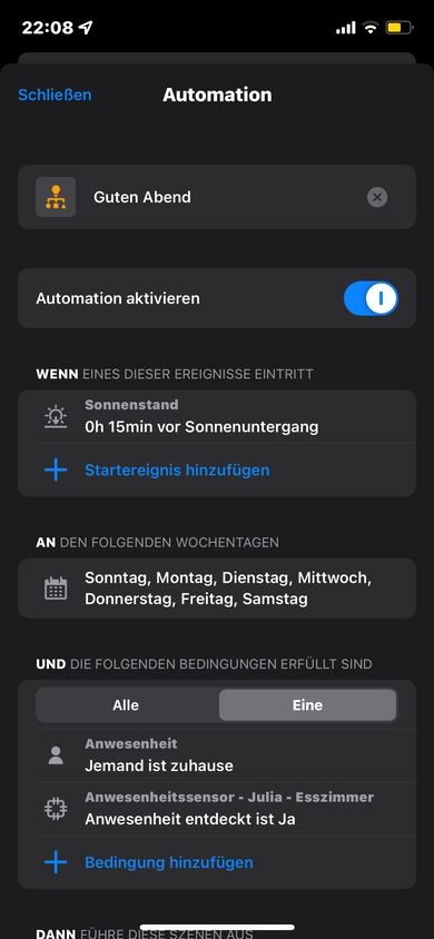 Mir schwebt eine Automation bei der das Licht in der Küche angehen soll sobald ich oder meine Frau heimkommt und die Eingangstür geöffnet wird. Mehr brauche ich im Moment nicht.