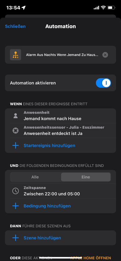 Mir schwebt eine Automation bei der das Licht in der Küche angehen soll sobald ich oder meine Frau heimkommt und die Eingangstür geöffnet wird. Mehr brauche ich im Moment nicht.