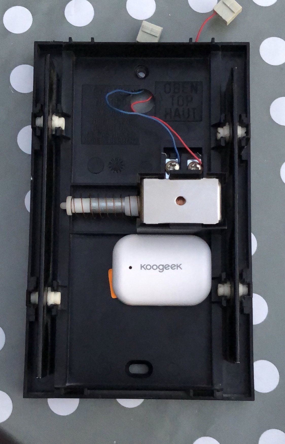 <br><br><p>Aber ich würde den gerne in oder an der originalen Klingel verbauen. Also nicht mit nem zusätzlichen Funk Modul oder so. Geht das auch?</p>So sieht der Koogeek von innen aus. <br>Kann ich den nun auch so verbauen?
