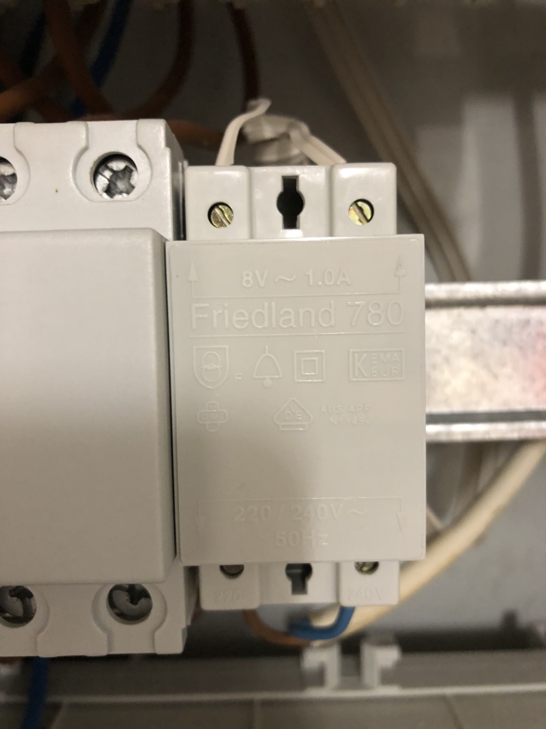 Hier mal der Trafo im Sicherungskasten und die Kabel am Türgong....