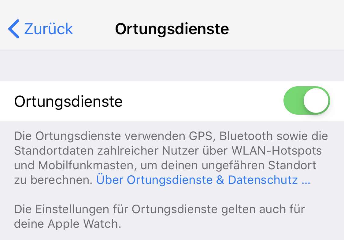 Einstellungen- Datenschutz-Ortungsdienste und prüf ob dieser Schalter dort Deaktiviert ist.