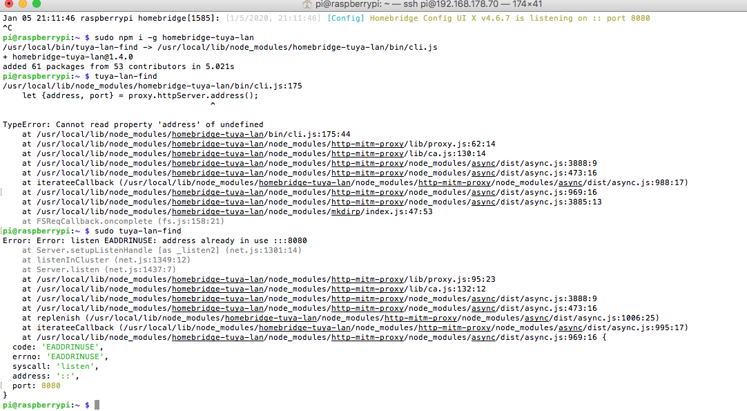 Anscheinend bin ich einfach zu blöd das hinzubekommen. Was funktioniert ist "sudo npm i -g homebridge-tuya-lan" danach hört einfach alles andere auf zu funktionieren. Egal ob ich as Lan-find mit und ohne "sudo" mache, läuft nix. Hat noch jemand eine Idee?