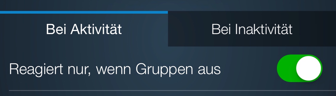 - wird eine Lampe durch HomeKit ausgeschaltet funktioniert danach das ausschalten des Raums durch den Bewegungsmelder nicht mehr und die Lampen bleiben an.