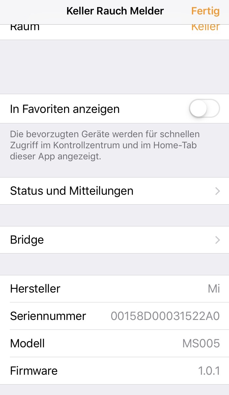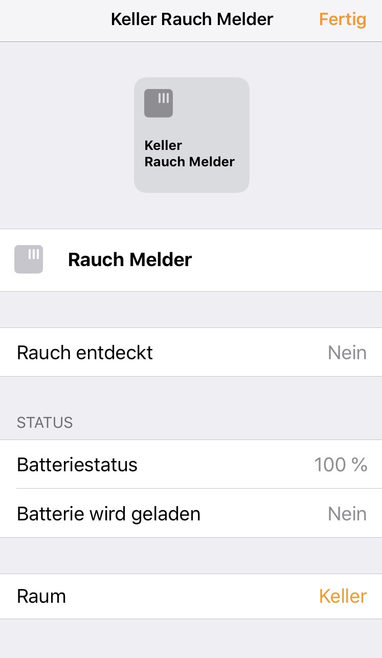 Hallo, der Xiaomi Mija Rauchmelder ist heute gekommen und wurde auch sofort in HomeKit erkannt bzw. eingebunden.