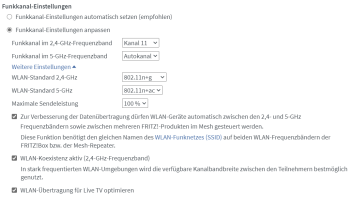 Das Problem kenne ich, eine Kanalwahl ist aber leider nicht möglich, da die Fritte dort im Mesh hängt.