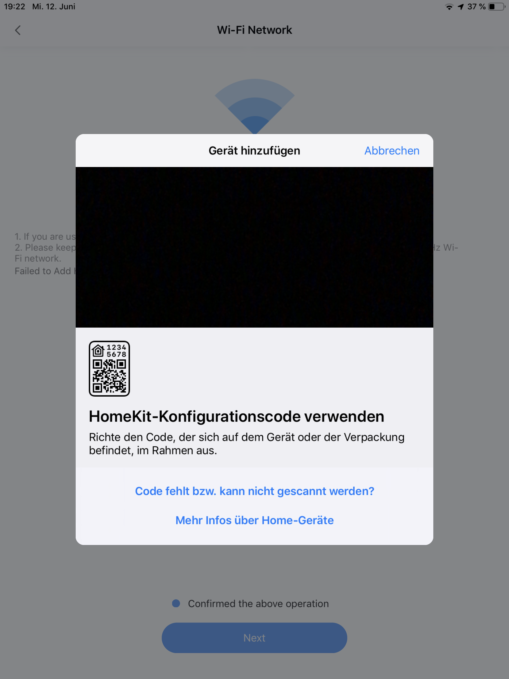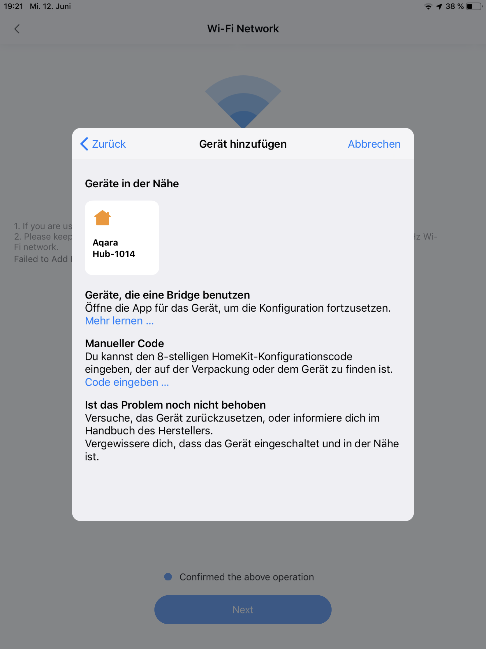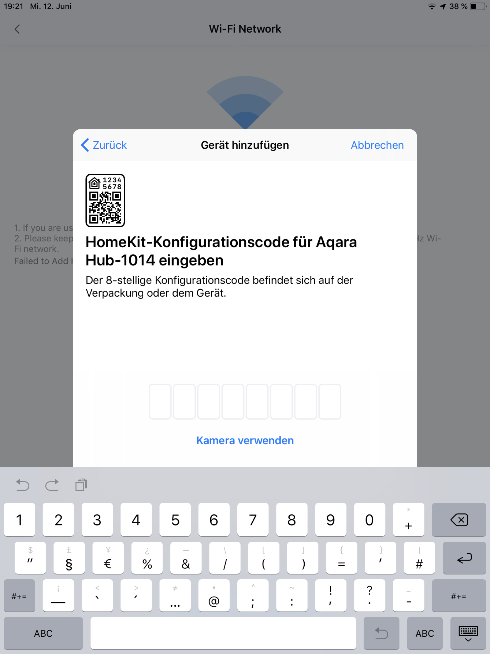 +suche den Aqara Hub und gebe den HomeKit Code ein