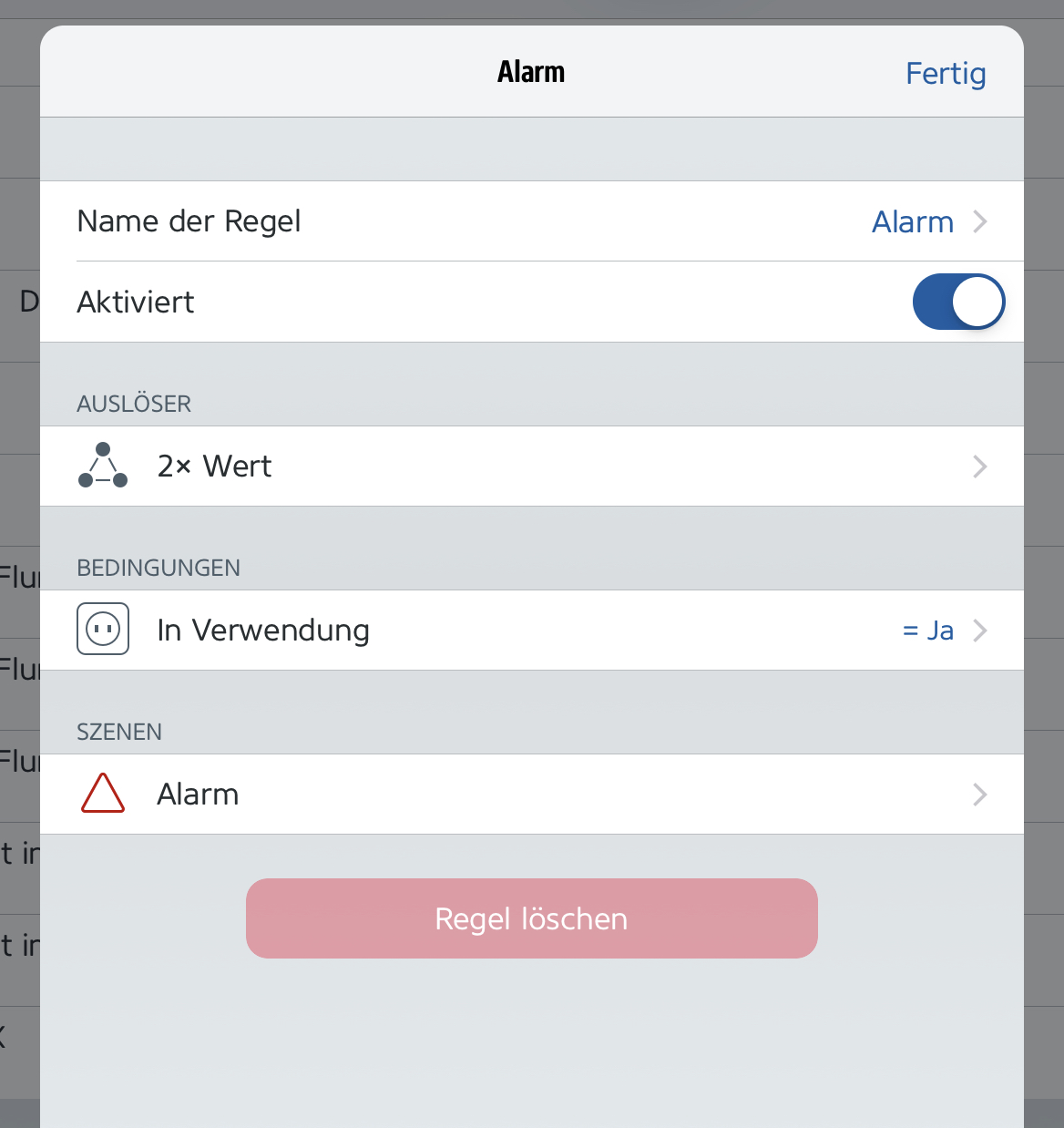 • 2: Ich hab mir angewöhnt, alles soweit wie möglich direkt mit Home zu erstellen. Ich glaube, die Regeln laufen dann zuverlässiger, ist aber eine rein subjektive Wahrnehmung.