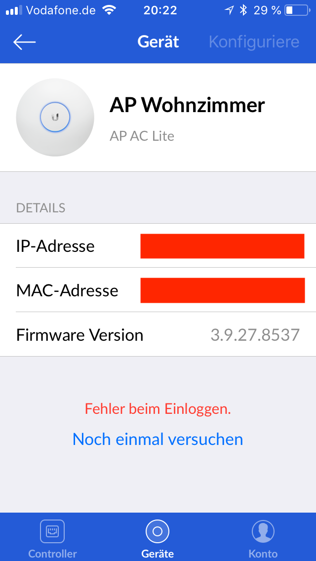 Ich habe ja seit meiner Netzwerk-Umstrukturierung im Wohnzimmer einen AP AC Lite. Ich betreibe diesen ohne Controller, als einzelnes Gerät. Einrichtung und Verwaltung per iPhone App.