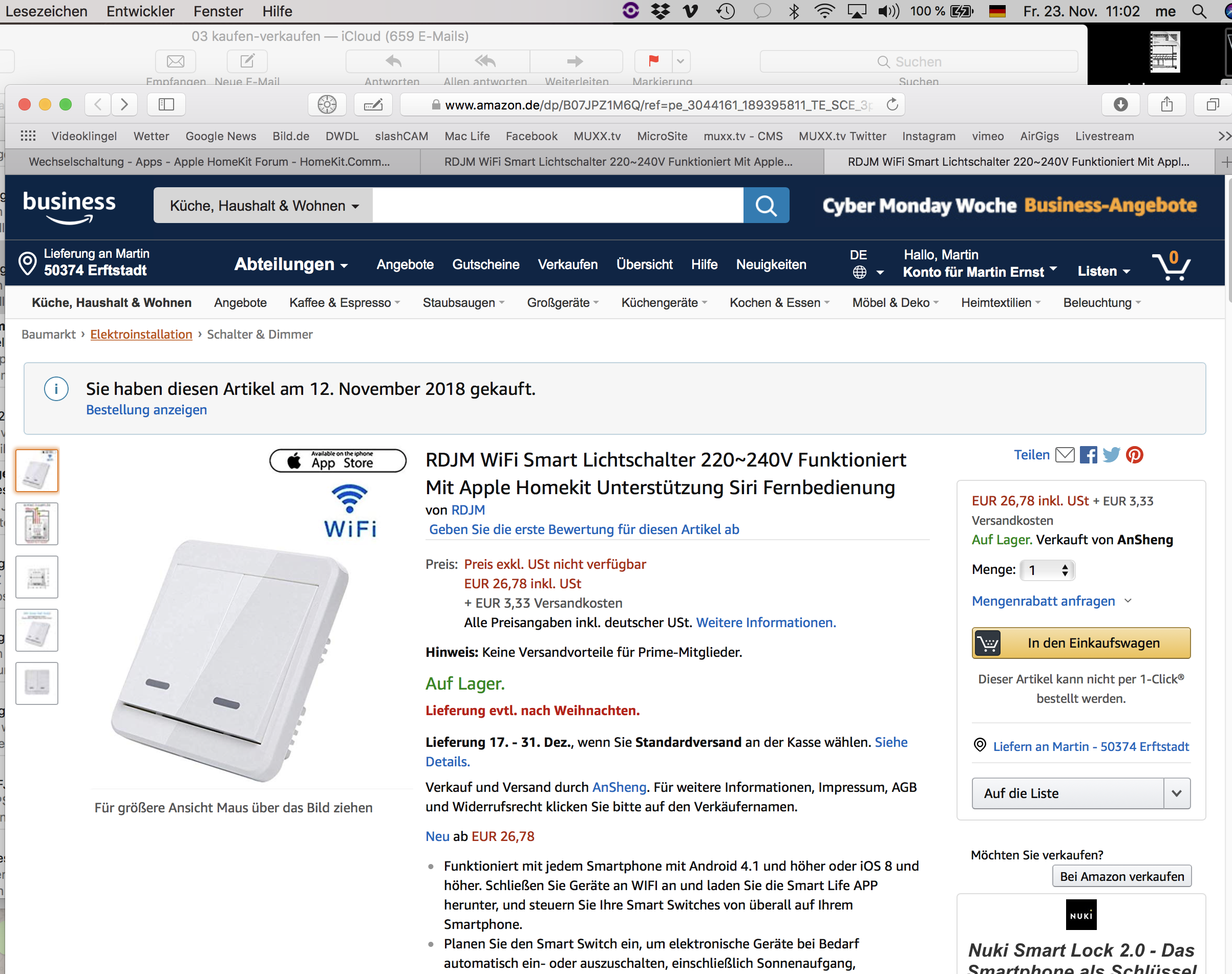 Dies soll lediglich eine Info sein über einen weiteren HomeKit Schalter und keine Empfehlung meinerseits sein.