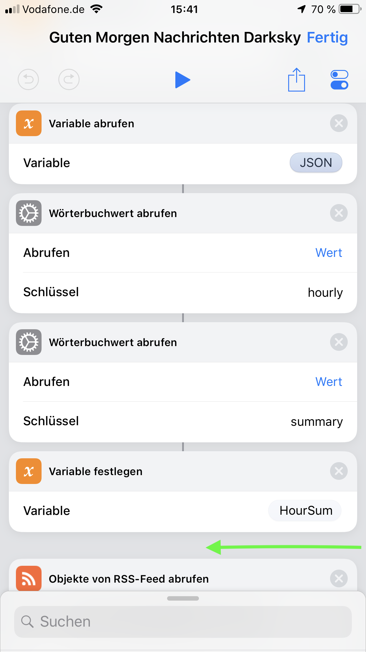 Als erstes wird eine HomeKit Scene gestartet.
