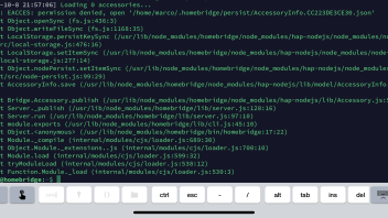 Plötzlich ist die Erkennung in der Home App weg. Wenn ich dann in der Shell die Homebridge starte bekomme ich folgenden Fehler (Screenshot)