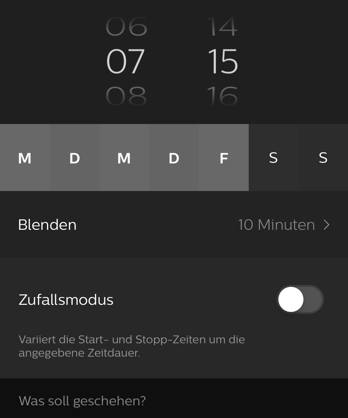 Ich habe mir diese Zufällige Anwesenheitssimulation nachgebaut gemäss Anleitung von Smartapfel.
