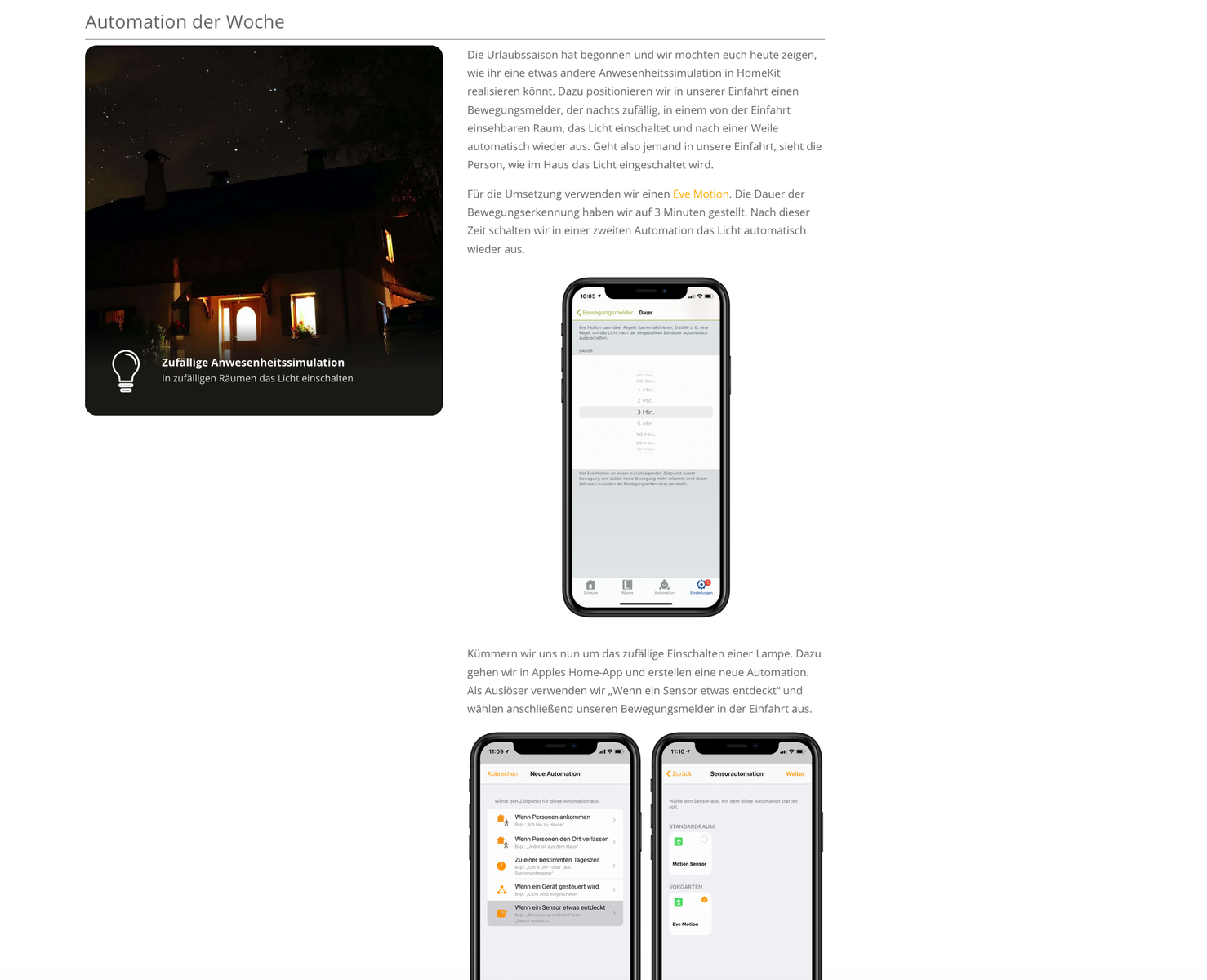 In der Automationsanleitung wird zunächst in der Eve-App eine Regel für das Ausschalten der Lichter erstellt, um die eigentliche Automation danach in HK einzurichten. Darum ging es mir.