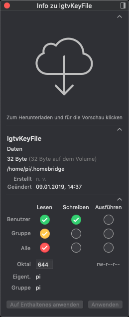Nach dem Bestätigen am LG wurde das File in dem Verzeichnis automatisch angelegt und somit auch nach dem Neustart der Homebridge alles gut.
