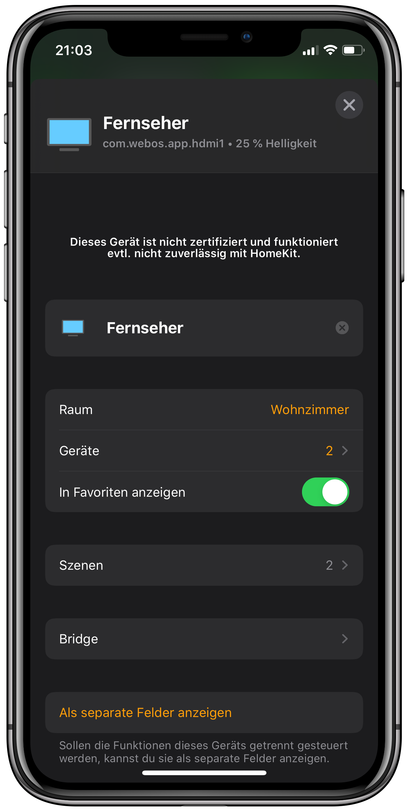 Hierzu mal meine Home App Ansicht für LG TV (siehe Anhang)... ich versteh jetzt nicht genau, was Du mit Kacheln meinst. Die Symbole (?) auf den Kacheln sind ja alles Schalter: