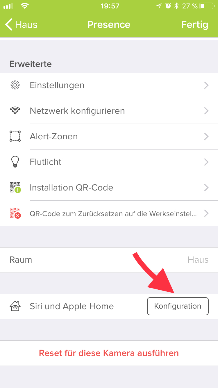 Wenn ich über die Apple Home app direkt gehe findet er die Kamera nicht und über die Security app die Konfiguration kommt folgendes: