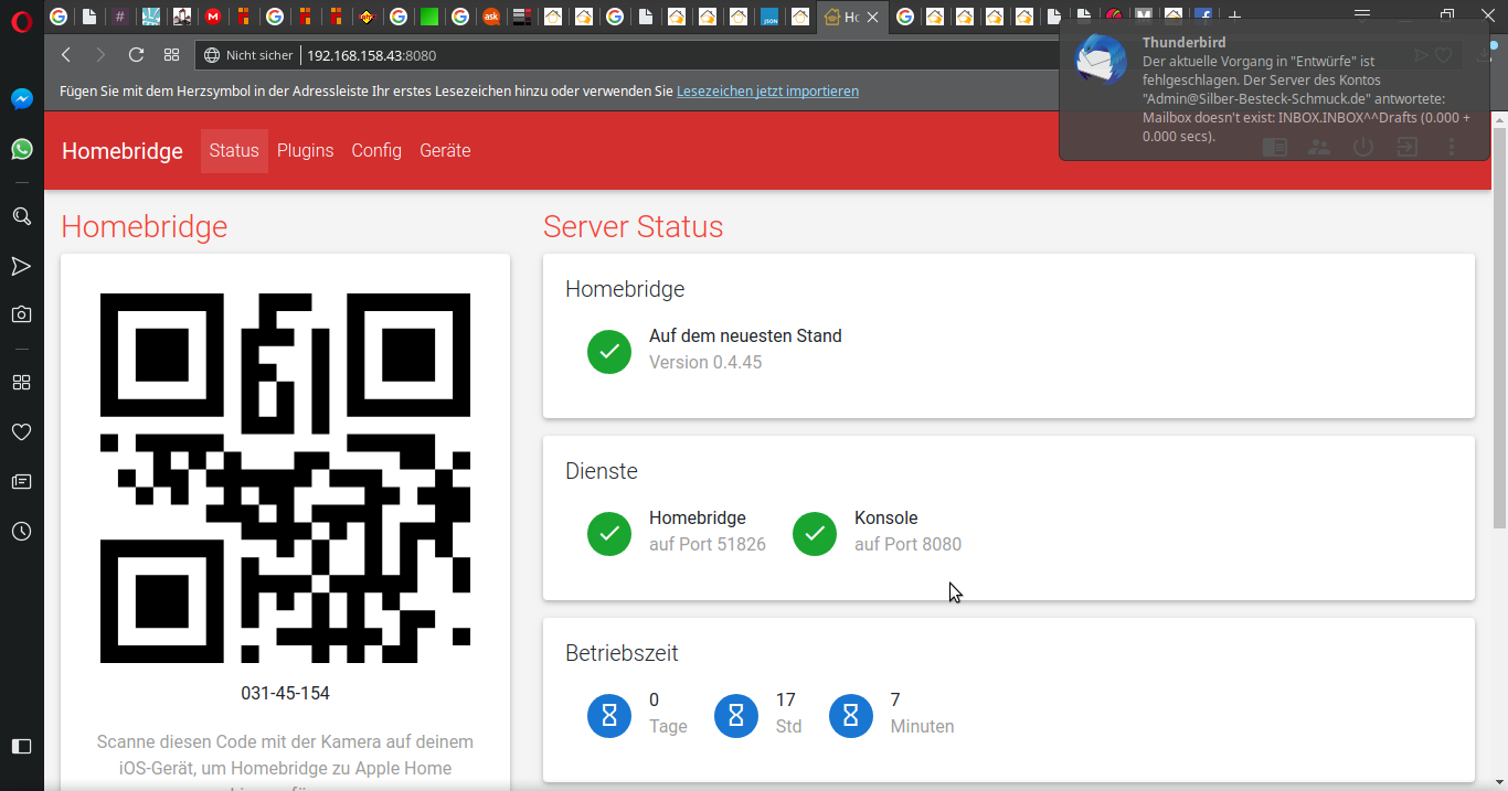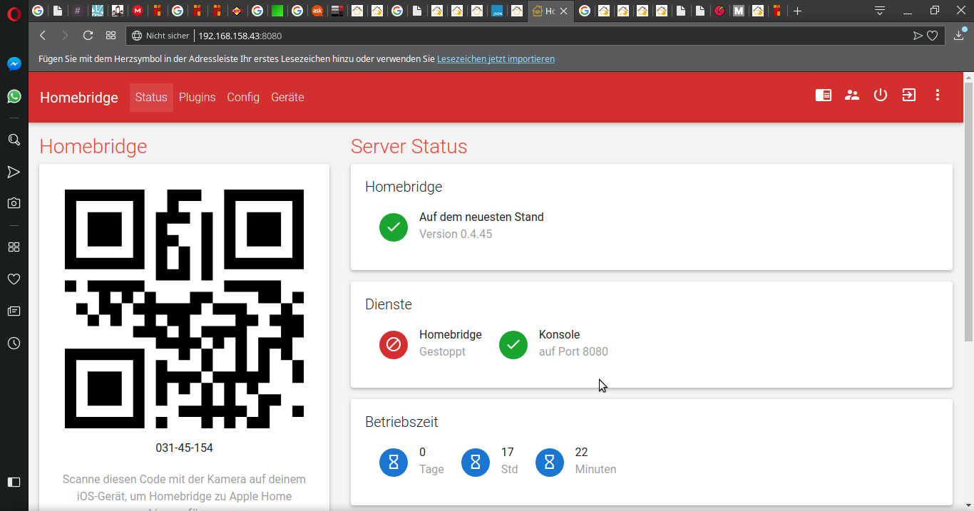Problem jetzt ist, dass die Homebridge garnicht mehr erreichbar ist. Eventuell ein falscher Port, aber wiese?:/