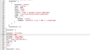 - Auch gibt es in der Config jeweils immer jeweils nur ein "ich nen es mal Kapitel" für platform, accessories etc. Dies sind gekennzeichnet mit den eckigen Klammenr [ ] und dort gehört jeweils der entsprechende Teil hinein.