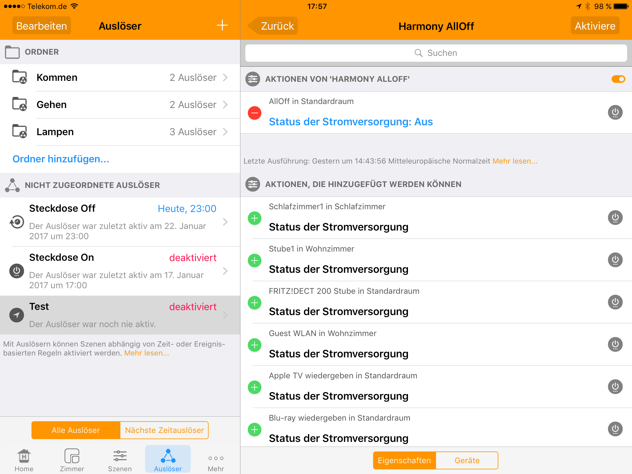 Also den befehl bei iConnectHue gelöscht. (Nur diese eine Taste) Dann in der Home App von M. ein Auslöser zusammengestellt.