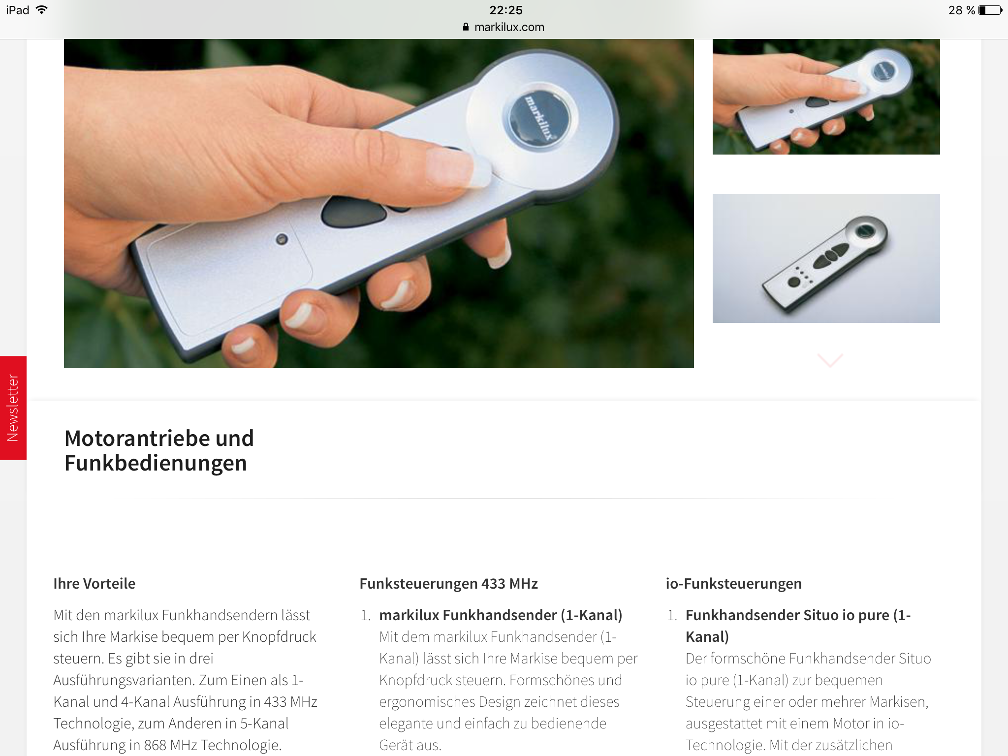 Dann habe ich mir gedacht unsere Markise per 433 MHz steuern zu könnnen, musste aber feststellen, dass es doch nicht klappt.