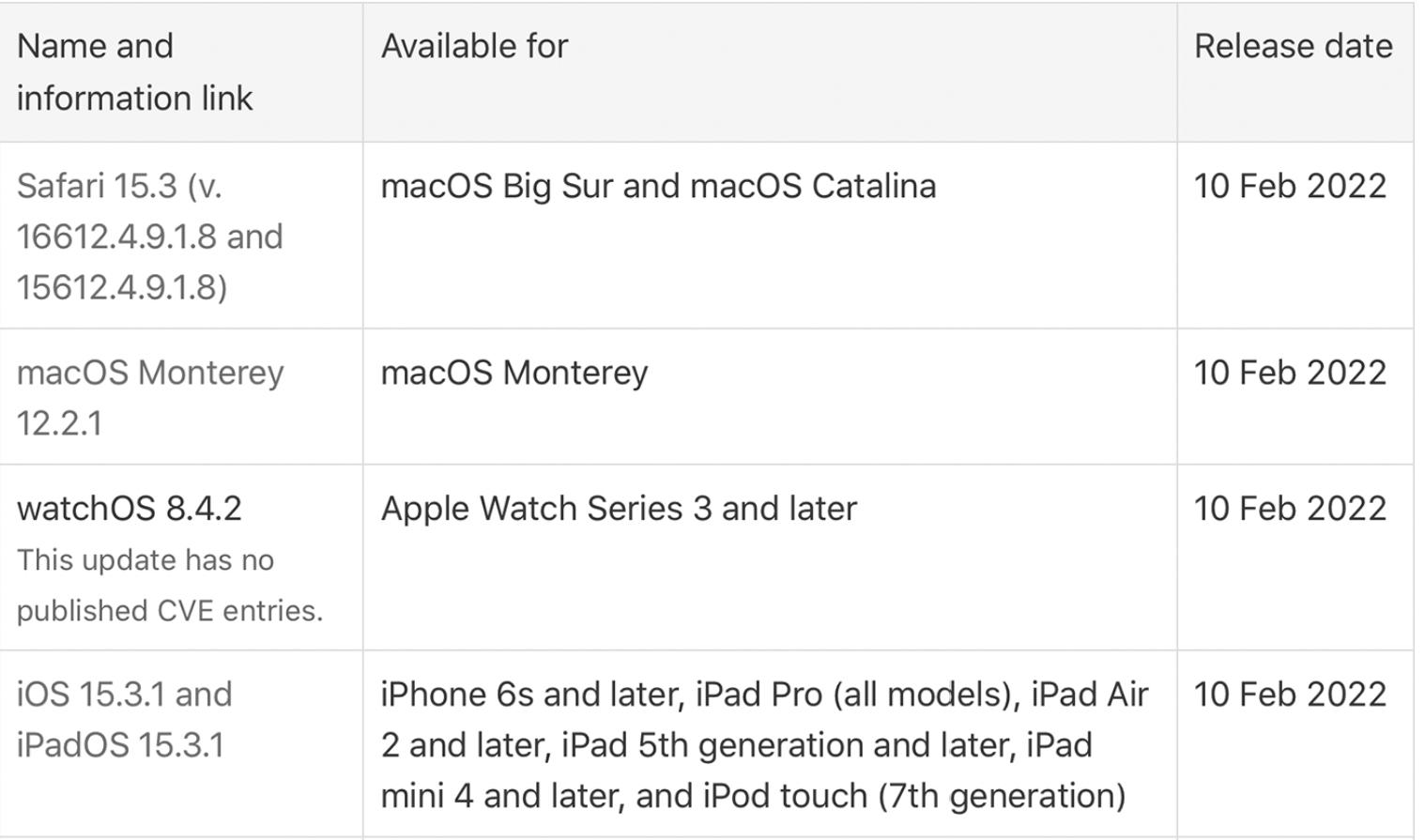 • iOS 15.3, iPadOS15.3, watchOs 8.4, HomePod 15.3 & tvOS 15.3, macOS 12.2 ist raus