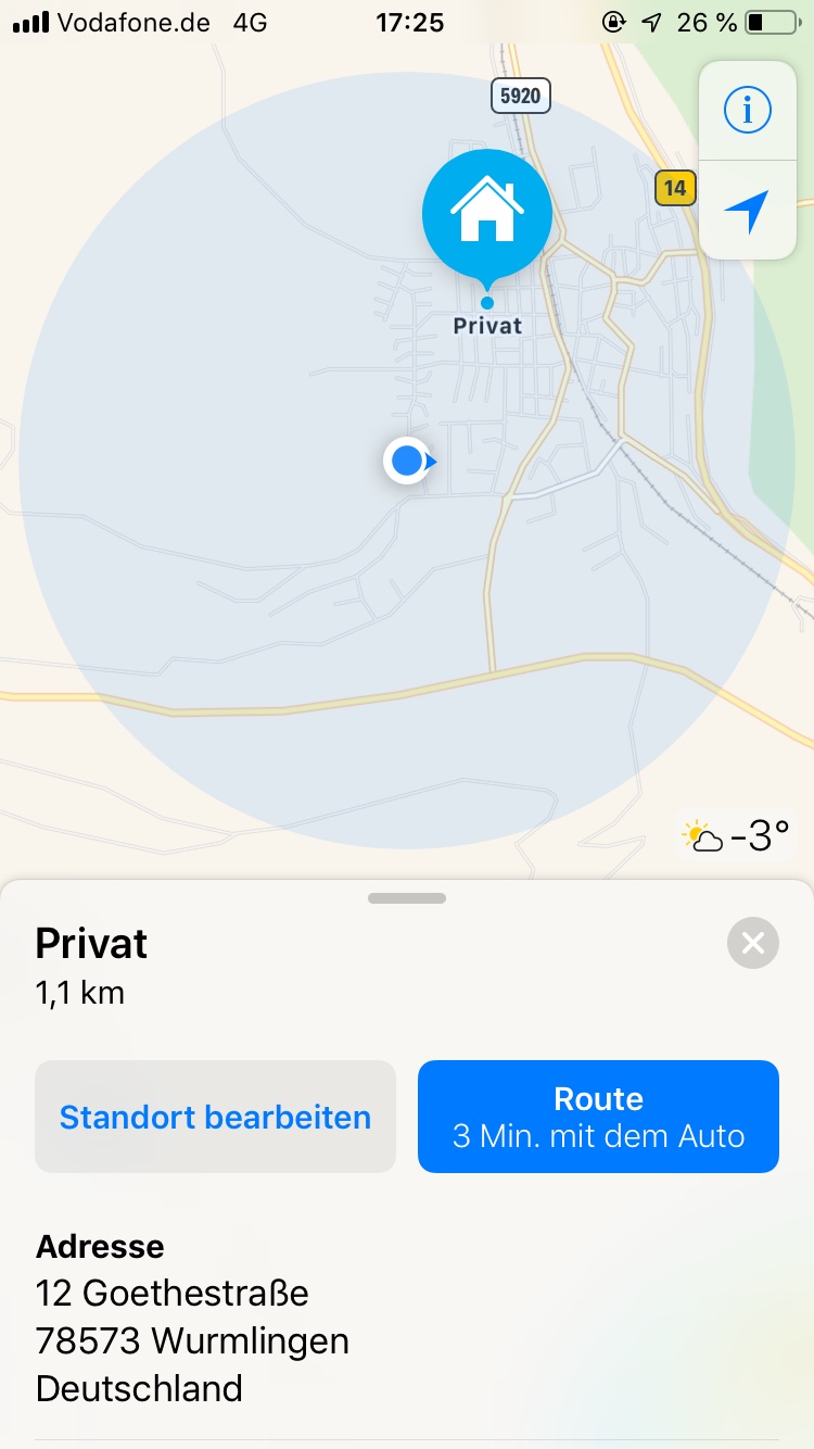 Aus welchem Grund auch immer hat die Ortung ja nicht richtig funktioniert, hab ja nun festgestellt das die Ortung bei aktivem WLAN ziemlich genau funktioniert und bei deaktiviertem WLAN (Mobilfunknetzt) ortet es mich nicht direkt zuhause, sondern so wie weiter oben in einem Screenshot etwas entfernt von zuhause, und dann lösen sie nicht aus.