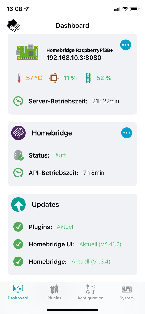 Du musst dein Betriebssystem, deine Programme wie Homebridge und die entsprechenden Homebridge-Plugins auf dem laufenden halten. Eine eierlegende Wollmilchsau für alles zusammen gibt es nicht. ![]()