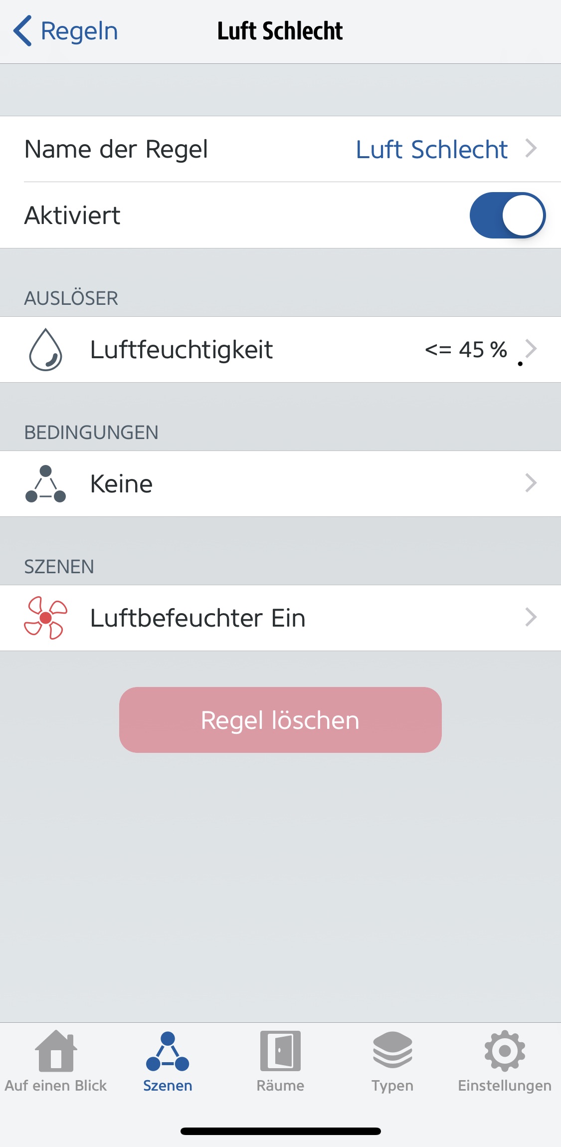 WENN Luftfeuchtigkeit <=45% DANN starte Szene „schalte Steckdose an“