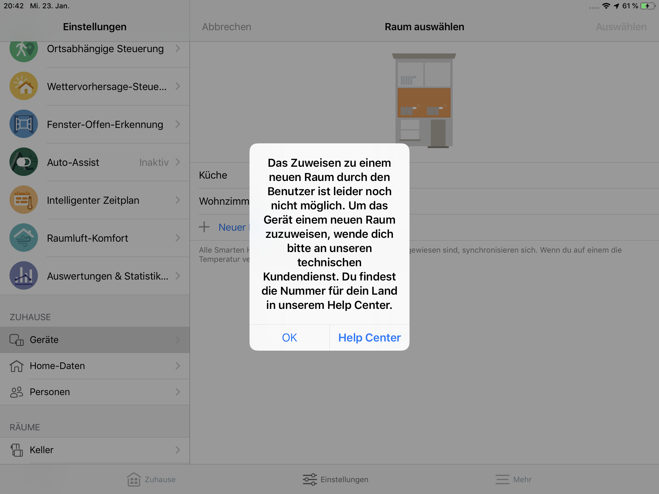 Leider habe ich bis jetzt nicht hinbekommen in der Tado App mehr als 3 Räume zu erstellen, wenn ich versuche einen weiteren zu machen sagt mir die App in etwa folgendes: