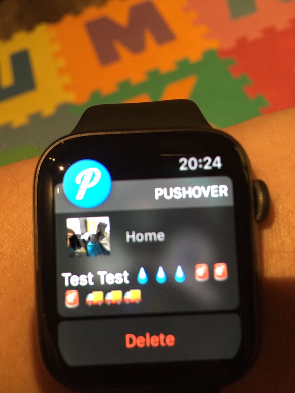 Das hier ist mal ein Test, wie die Mitteilung auf der watch aussehen kann, das Foto ist bewusst unscharf und die Gesichter geschwätzt worden ?