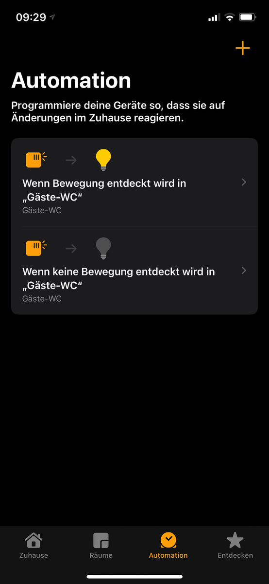 - Licht geht an und bleibt solange an (und geht dann automatisch aus), bis ich das Gäste-WC wieder verlasse (egal ob es 3 Sekunden sind oder 30 Minuten)