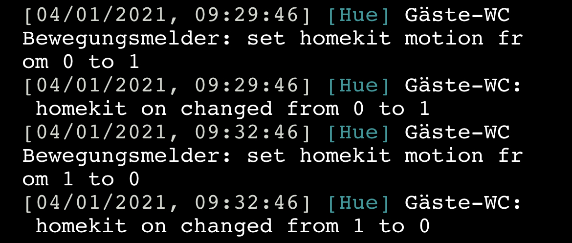 [06/01/2021, 05:24:18] [Hue] Gäste-WC Bewegungsmelder: set homekit motion from 1 to 0