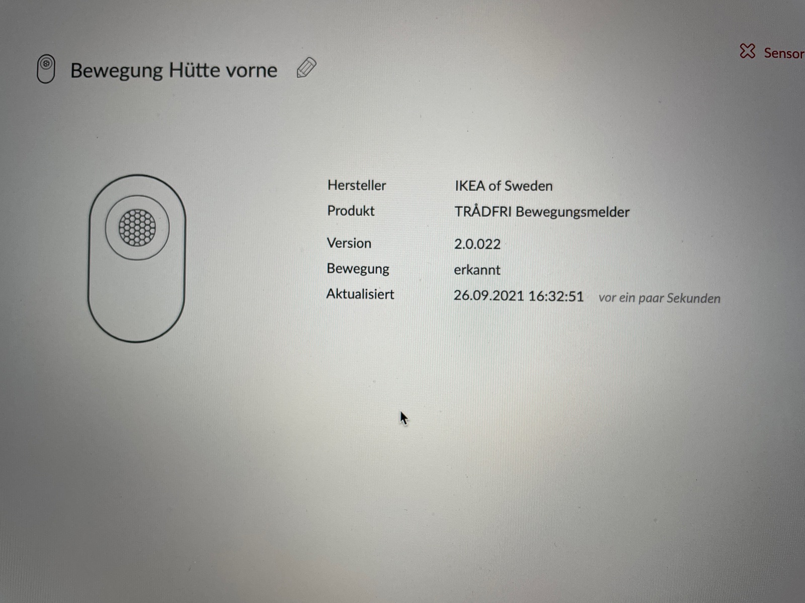 Ich habe den Ikea Tradfri Bewegungsmelder (neuere Version) und habe diesen via Phoscon / HB in mein HK hinzugefügt. Dazu habe ich eine Ikea Tradfri E27-Lampe, welche ich ebenfalls auf gleichem Weg in mein HK hinzugefügt habe.