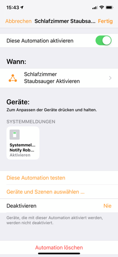 Und wenn Robbi (by the Way ist ein Neato D7 mit dem Plugin) dann startet, erkennt die Automation dies, aktiviert den Switch "Notify Robbi Start" und IFTTT schickt mir die Benachrichtigung. Das sieht dann so aus.