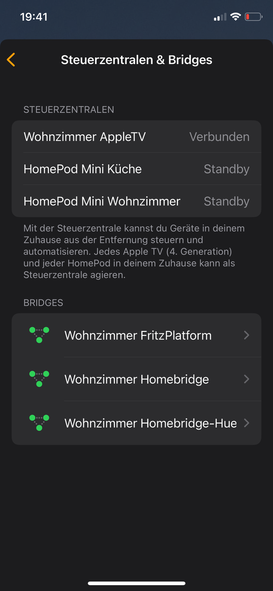 Jede Child Bridge taucht dann in Homekit als eigene Bridge auf, bei mir laufen Homebridge-Hue und das Homebridge-Fritz-Platform Plugin als separate Child Bridge:
