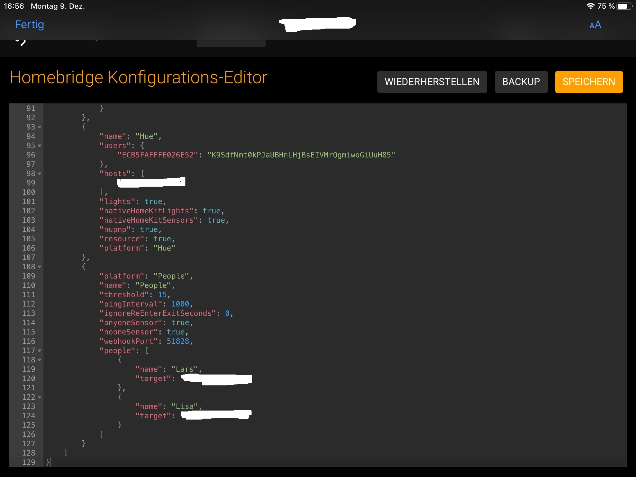 Werde heute mittag wenn ich zuhause bin über Phoscon nochmal "mit App verbinden" und dann die Homebridge neu starten und dann den Log posten und die Config dazu.Die Config muss ja erst angepasst werden mit den Daten die mir angezeigt werden sollten, oder gibt es Anpassungen die schon davor getätigt werden müssen?
