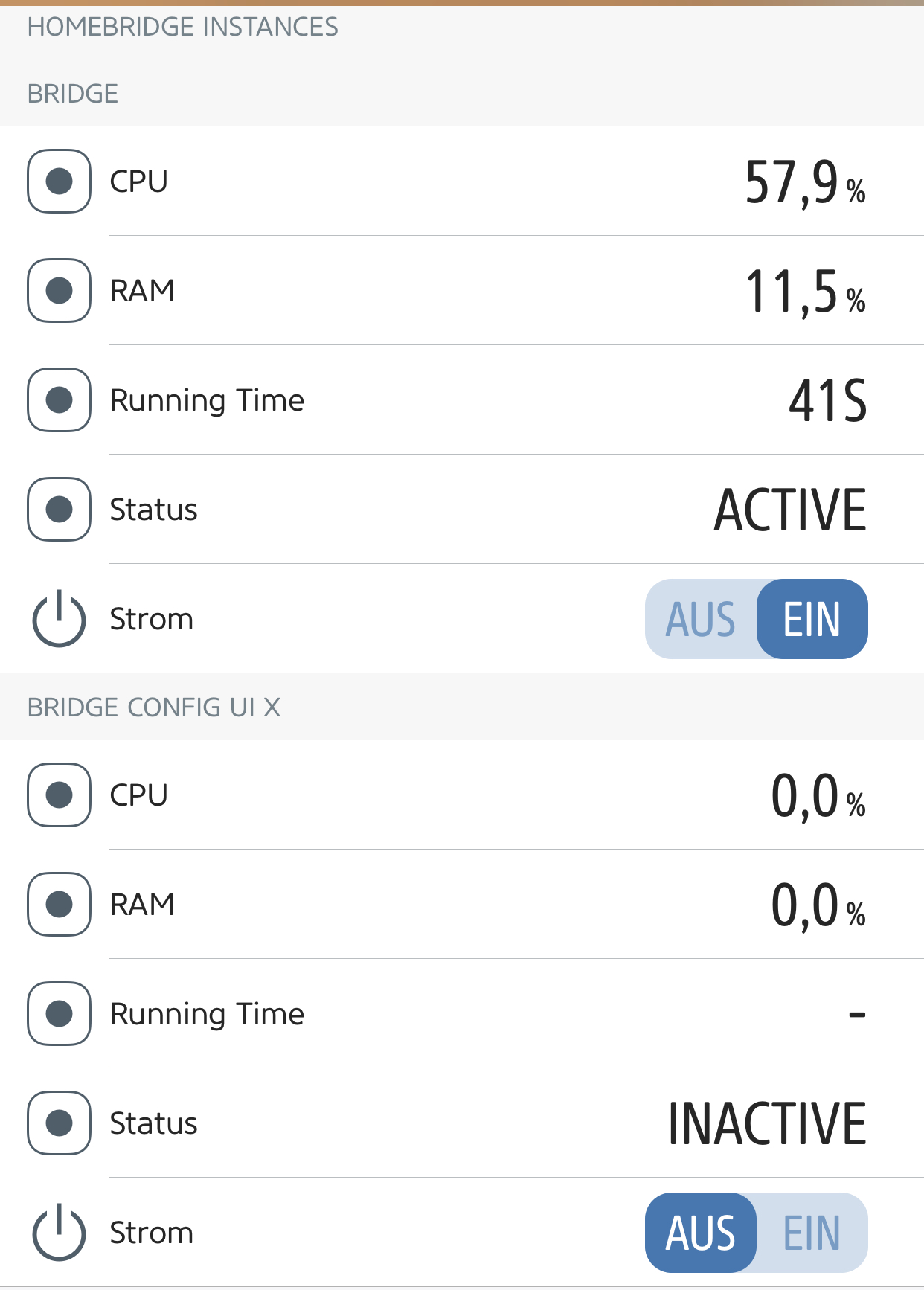 Apr 24 19:34:29 HomePi homebridge[24379]: [4/24/2019, 7:34:29 PM] [InstancesPlatform] [INFO] Homebridge Instances: Updating homebridge-fritz-platform