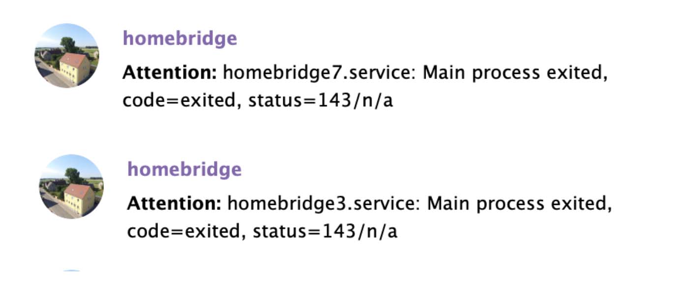 Ja, da ich regelmäßig update und dann bei globalen Plugins, wie config-ui-x, alle Instanzen durchstarte, bekomm ich dann die Meldungen: Attention: homebridge3.service: Main process exited....... homebridge4.service.... usw. Auf jeden Fall zeigt es mir den Namen der Instanz an, sofern die .service entsprechend benannt ist.
